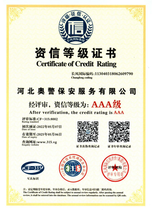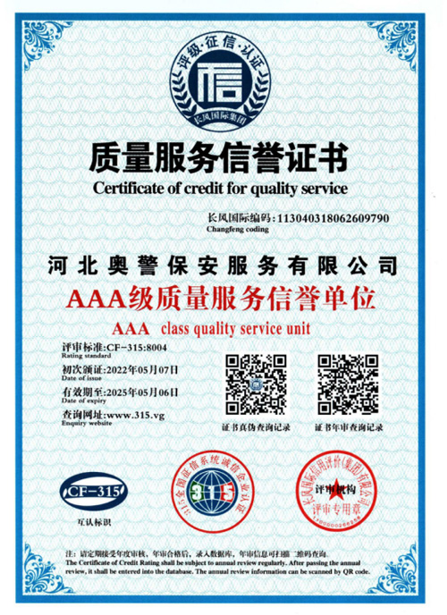 奧警邯鄲保安公司是一家民營保安服務(wù)公司,工商行政管理局登記注冊(cè),獲取相關(guān)等級(jí)資質(zhì)證書,是一家大型的保安連鎖服務(wù)公司。